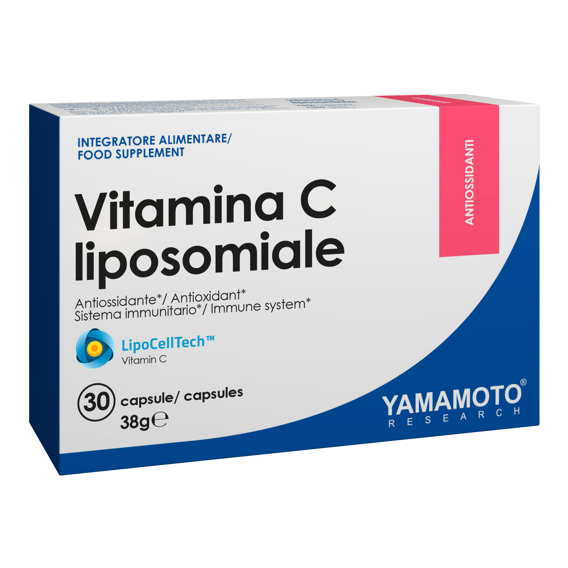 Ingredienti: vitamina C liposomiale LipoCellTech™ (acido L-ascorbico, emulsionante: lecitine), capsula (agente di rivestimento: idrossi-propil-metilcellulosa), agenti di carica: cellulosa, fosfato dicalcico; agenti antiagglomeranti: biossido di silicio, sali di magnesio degli acidi grassi.